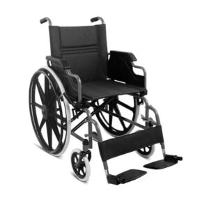 SILLA DE RUEDAS EJECUTIVA ALUMINIO ESPALDAR ABATIBLE PINTADA DOBLE BARRA, APOYABRAZOS ABATIBLES PIECEROS FIJOS, LLANTA TRASERA NEUMÁTICA RIN RADIO, COJINERÍA EN LONA.